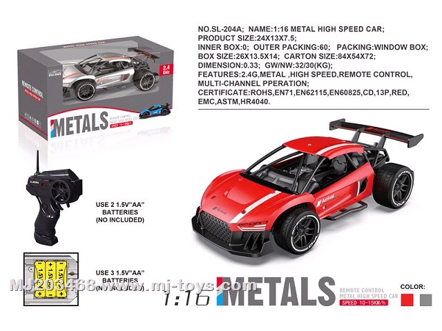 MJ1373341:14 four-way 2.4G remote control vehicle. 2*1.5AA battery for remote control (not included) 93.00 * 42.00 * 65.00 -
